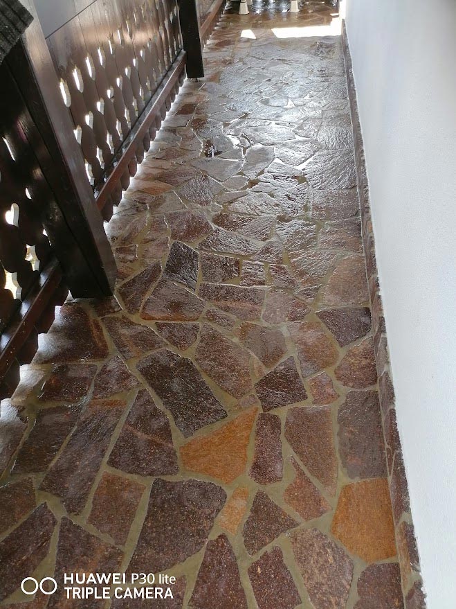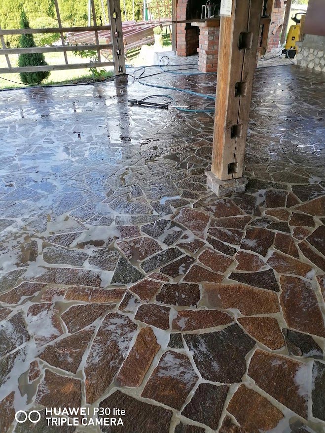 Za restavracijo v Bohinju smo izvedli celovito čiščenje talnih površin iz naravnega kamna porfido. V okviru dela smo izvedli globinsko čiščenje kamenih tlakovcev, kjer smo odstranili nabran sloj umazanije, sedimentov in mikroorganizmov, nato pa površino obnovili do videza urejenega in brezhibnega tlaka.