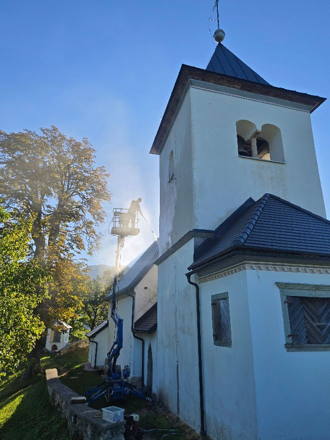 Čiščenje fasade na cerkvi – Gorenjska
